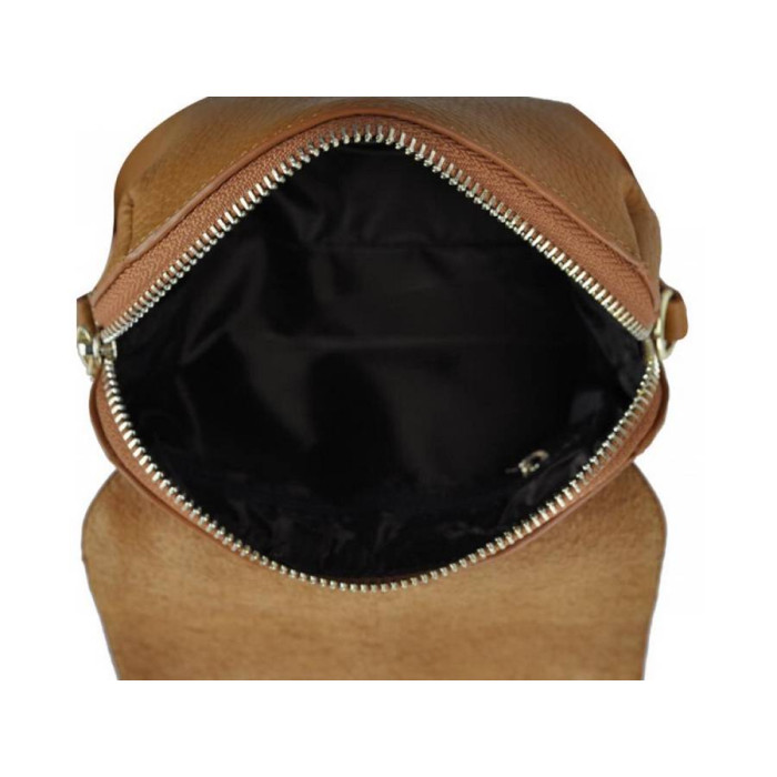 Компактна і містка жіноча сумка з натуральної телячої шкіри виготовлена компанією Riche. Дана модель має одне основне відділення, яке закривається за допомогою клапана-кришки, а також блискавичної застібки. Всередині є додатковий відсік закритого типу. Хоча вона не велика за розміром, але дуже містка. З легкістю розмістить в собі речі, які повинні бути завжди під рукою: гаманець, ключі, смартфон, косметика та ін. Дана сумка носиться на плечі за допомогою шкіряного ремінця, який регулюється по довжині і кріпиться за допомогою високоміцних карабінів, так що його можна легко відстібнути і носити сумку в руці.