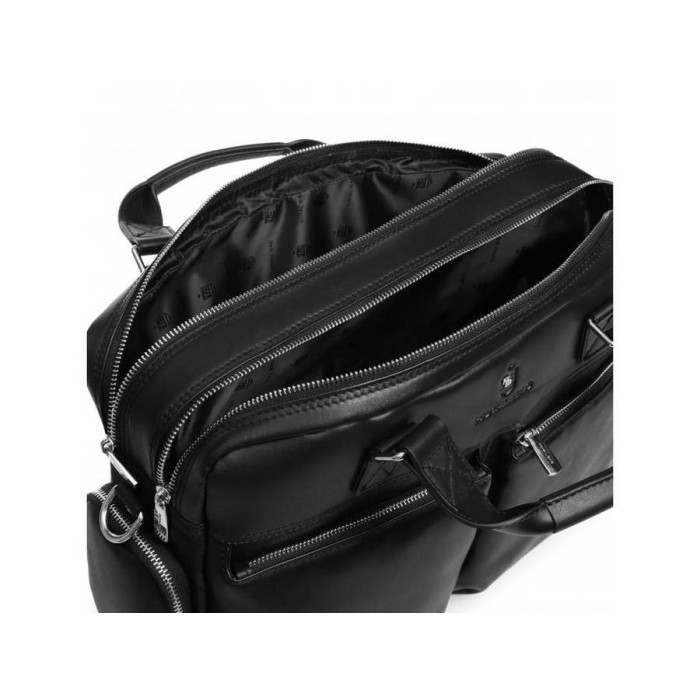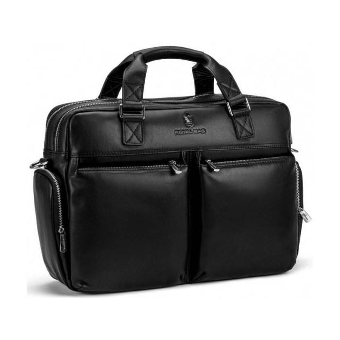 Містка чоловіча сумка з телячої шкіри. Гладка поверхня, надійна фурнітура сріблястого кольору, безліч кишень і ергономічність роблять представлену модель незамінною для роботи та відряджень. Крім ноутбука і документів в сумку поміститься ланчбокс і особисті речі. Анатомічні шкіряні ручки надійно пришиті до сумки, а знімна наплічна шлейка фіксується за допомогою карабінів. З лицьового боку і з боків по два накладних кармана. С тильної сторони відсік горизонтального типу на блискавці. На дні металеві кнопки, які захищають сумку від пошкоджень.