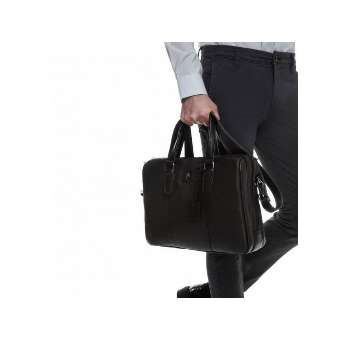 Чоловіча шкіряна сумка з натуральної телячої шкіри. Основне відділення закривається на блискавку, всередині кишеня горизонтального типу. По обидва боки аксесуара розташовані додаткові відсіки по всьому периметру сумки, які ідеально підійдуть для документів, портмоне або невеликих гаджетів. Щільна підкладкова тканина, надійна фурнітура та ергономічність роблять представлену модель незамінним супутником на кожен день. Наплічна шлейка регулюється по висоті і, при необхідності, відстібається.