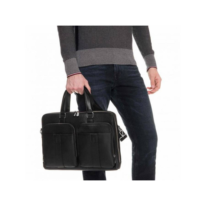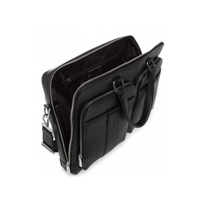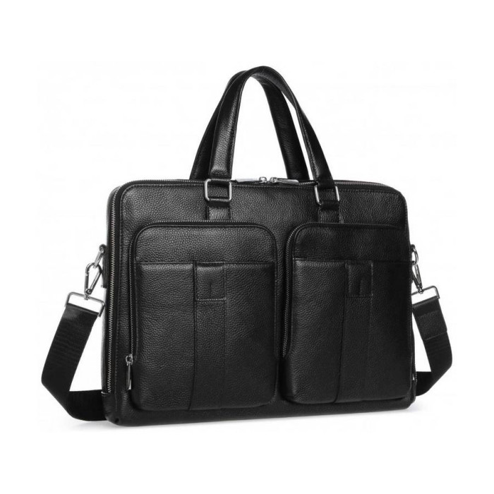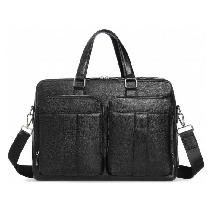 Чоловіча ділова сумка з щільної телячої шкіри відрізняється не тільки зручністю, але й ергономічністю Два способа носки - на плечі або в руках, в якості портфеля, безліч кишень, органайзери всередині для гарнітури та канцелярії, відсік для ноутбука. Оптимальний розмір сумки робить можливим перенесення гаджетів або документів формату А4. Слід звернути увагу на міцний якісний матеріал внутрішньої підкладки і надійну довговічну фурнітуру.