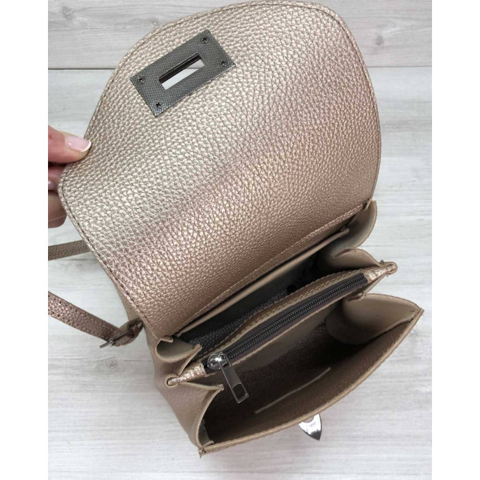 Основне відділення застібається на клапан. Всередині вшита косметичка на блискавці, яка ділить сумку навпіл. Так само є зовні кишеня для дрібних предметів.