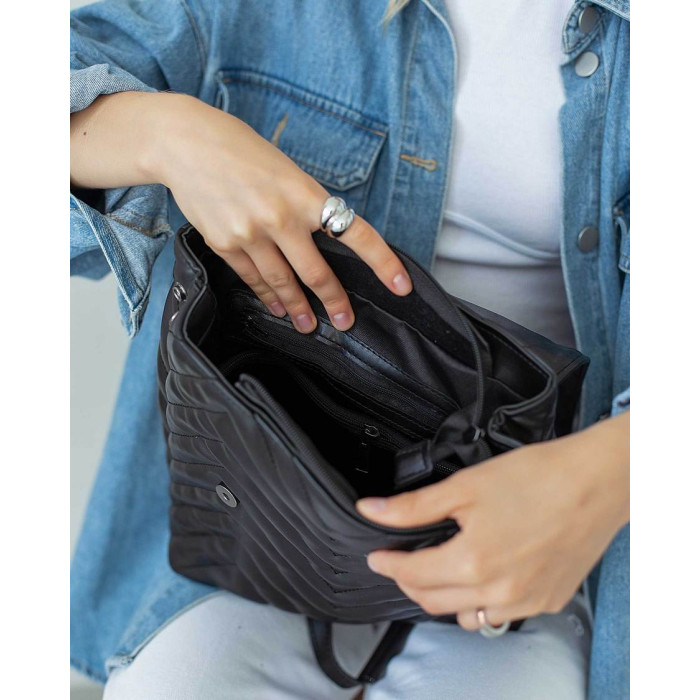 Молодіжний жіночий сумка-рюкзак 46804 виробник "Welassie" Україна виконана з екошкіри високої якості. Кришка рюкзака відкривається за допомогою магнітів і блискавки, вміщує формат А4. Усередині сумка-рюкзак на щільній підкладці, має два відділення, між якими вшита косметичка. Також всередині є дві кишені: відкрита і на блискавки. Ремінь укріплений стропой, регулюється під різну довжину.