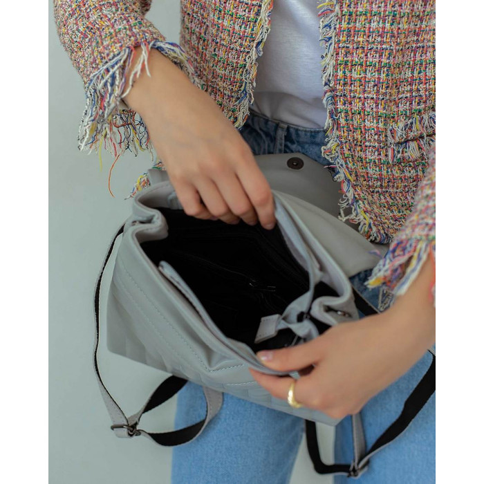 Молодіжний жіночий сумка-рюкзак 46901 виробник "Welassie" Україна виконана з екошкіри високої якості. Кришка рюкзака відкривається за допомогою магніту і блискавки. Усередині сумка-рюкзак на щільній підкладці, має два відділення, між якими вшита косметичка. Також всередині є дві кишені: відкрита і на блискавки. Ремінь укріплений стропой, регулюється під різну довжину.