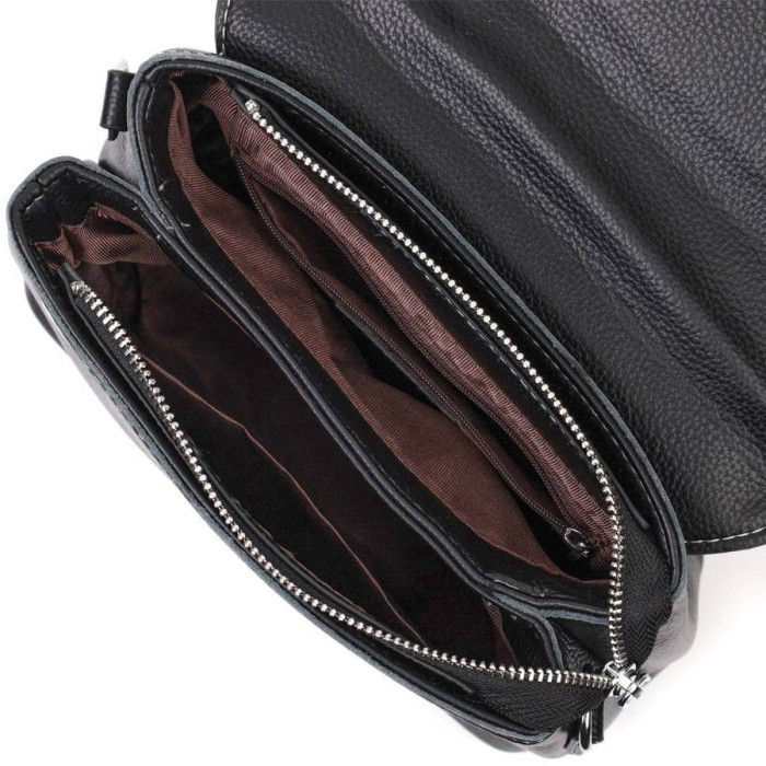 Жіноча сумка з натуральної шкіри флотар, яка невибаглива у догляді та довго носиться. Аксесуар складається з двох основних відділень, потайної кишені на блискавці та кишені відкритого типу. Носити сумку можна в руці, під рукою, на плечі та через плече, для цього є шкіряна ручка та знімний текстильний ремінь у колір виробу. В аксесуарі використано якісну фурнітуру кольору срібла. Універсальний варіант сумки на вечір, щодня, а також відмінно поєднуватиметься з діловим стилем.