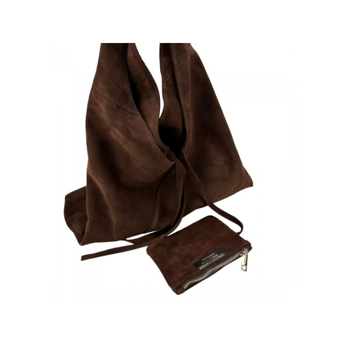 Сумка-шопер чорна шоколадного кольору велика Firenze Italy F-IT-7625DB-D