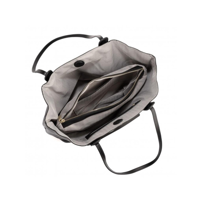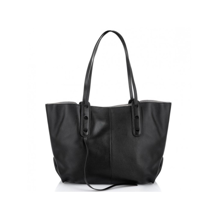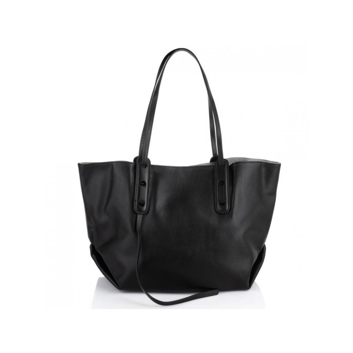 Шкіряна жіноча сумка з одним відділенням. Є тканинна косметичка на блискавці. Сумка закривається внутрішнім магнітом.