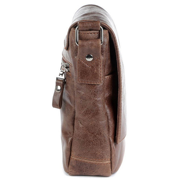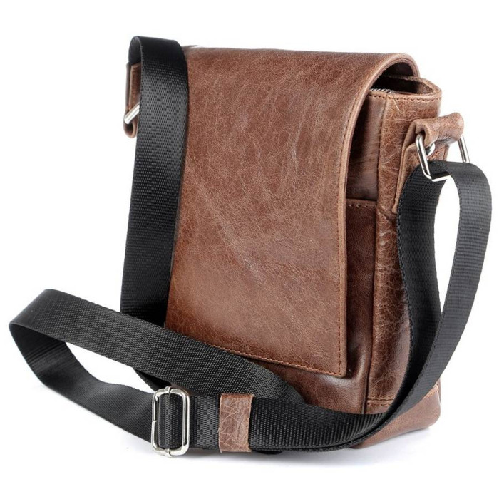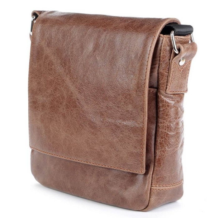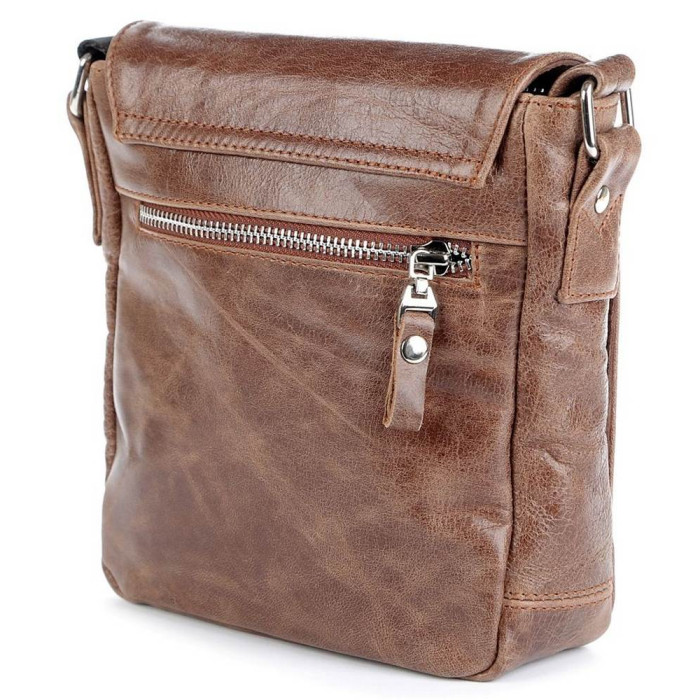 Добротна чоловіча сумка з натуральної високоякісної шкіри. Колір фурнітури: срібло. На задній зовнішній стороні знаходиться відділення на блискавці. Сумка закривається за допомогою клапана на двох прихованих магнітах і блискавкою. Під клапаном розташована накладна кишеня. Сумка носитися через плече за допомогою регульованого текстильного плечового ременя.