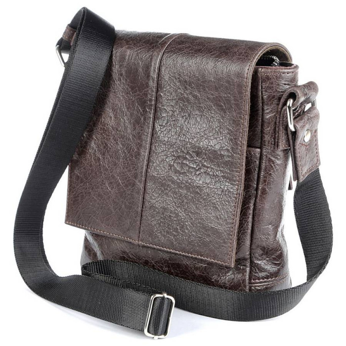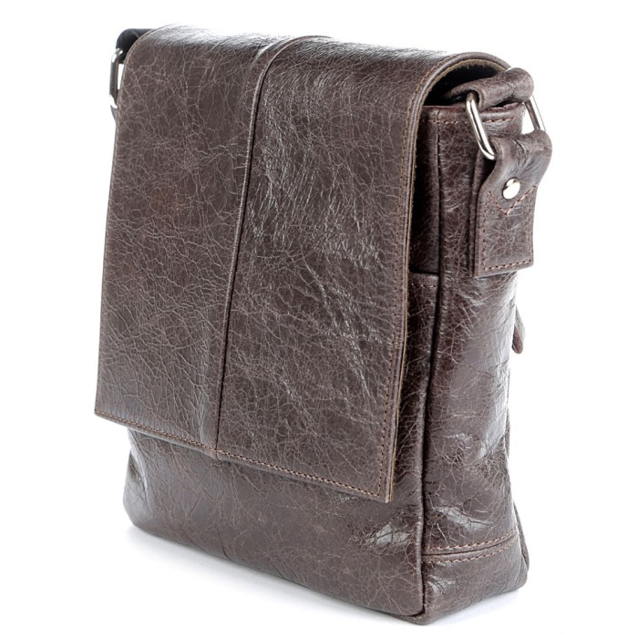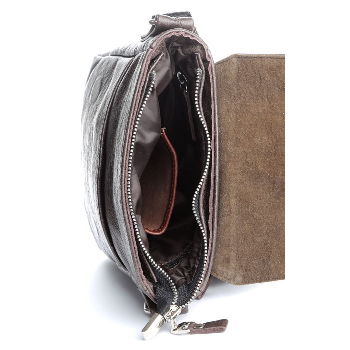 Оригінальна чоловіча сумка з натуральної високоякісної вінтажної шкіри. Колір фурнітури: срібло. На задній зовнішній стороні знаходиться відділення на блискавці, в яке можна помістити речі першої необхідності. Сумка закривається за допомогою клапана на двох прихованих магнітах і блискавкою. Під клапаном розташована накладна кишеня. Сумка носитися через плече за допомогою регульованого текстильного плечового ременя. Такий аксесуар є чудовим рішенням для подарунка чоловікові до будь-якого свята.