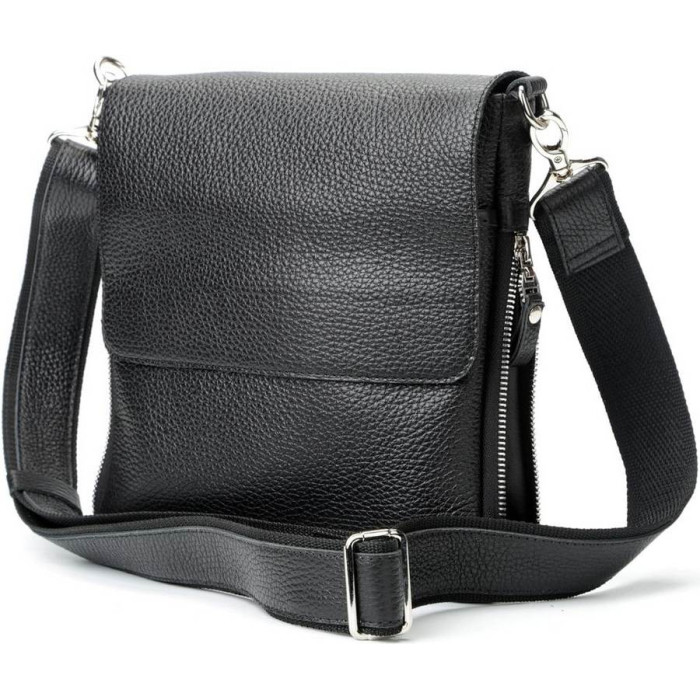 Красива шкіряна сумка з натуральної зернистої шкіри, більше відомої як флотар. Аксесуар обладнаний надійної металевою фурнітурою і міцним текстилем для внутрішньої підкладки.