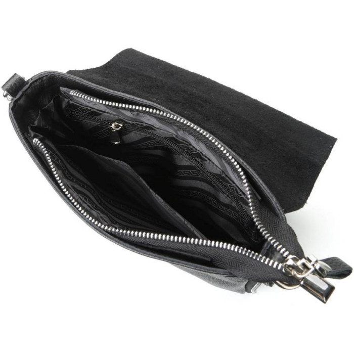 Закривається клапаном на чотирьох магнітах (два на клапані, два в сумці). При відкритті є добротний накладна кишеня. Головне відділення закривається блискавкою, для додаткового захисту особистих речей. Усередині на задній стінці озташована прихована кишеня на змійці, на передній стінці нашитий відділ для габаритного смартфона або портмоне.