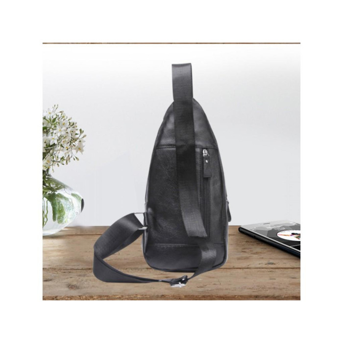 Слінг Tiding Bag F-A25F-5003A із натуральної шкіри в чорному кольорі.