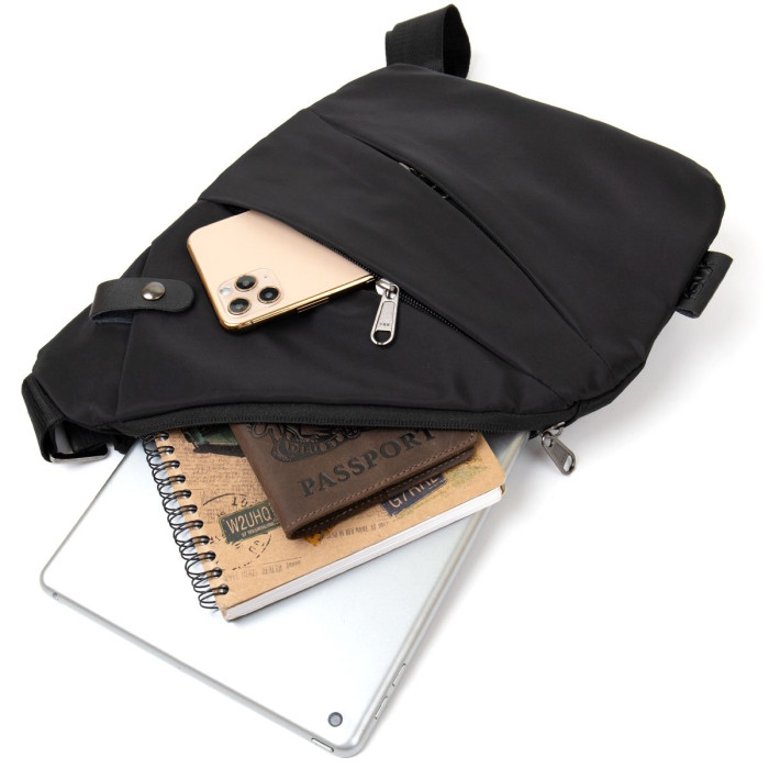 Дуже компактна сумка з нейлону класичного чорного кольору дуже легка. Ідеальна сумка для щоденного використання і поїздок. Сумка тонка і дуже ергономічна. Виріб продумано з урахуванням всіх тенденцій під практичного сучасного чоловіка. З сумкою слінг всі ваші особисті речі будуть в безпеці і перед вашими очима. Попередницею сумки слінг є сумка кобура. Саме вона була створена як сумка чохол для носіння зброї. Функціонал і розташування кишень даної сумки робить більш легким доступ до ваших особистих речей і дає можливість швидко їх дістати. Також сумка з легкістю може бути захована під рукою, що забезпечує більший захист від злодіїв і ваші цінні речі будуть перед вашими очима і в повному порядку. Сумка-слінг стане прекрасним подарунком для ваших близьких.