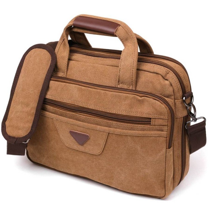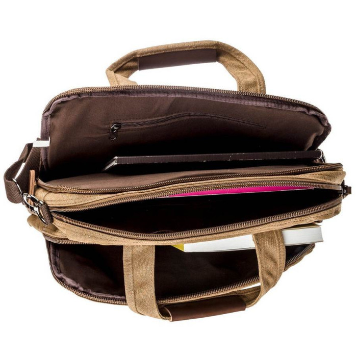 Текстильна сумка під ноутбук до 15 дюймів. Дуже зручна і легка модель. Виріб ви можете носити як через плече, так і в руках. Сумка дуже щільна і проноситься далеко не один рік. Сумка має два відділення і легко вмістить в себе не тільки ноутбук, але і документи або інші необхідні речі. Модель доповнена різноманітними кишенями для вашої зручності. Текстильна сумка стане ідеальним варіантом для тих, хто шукає доступну модель для повсякденного життя і не хоче переплачувати.