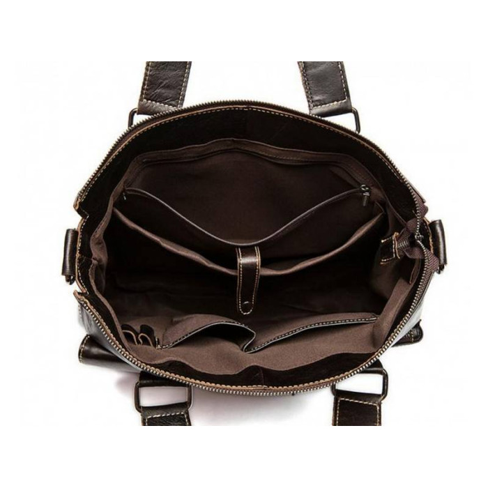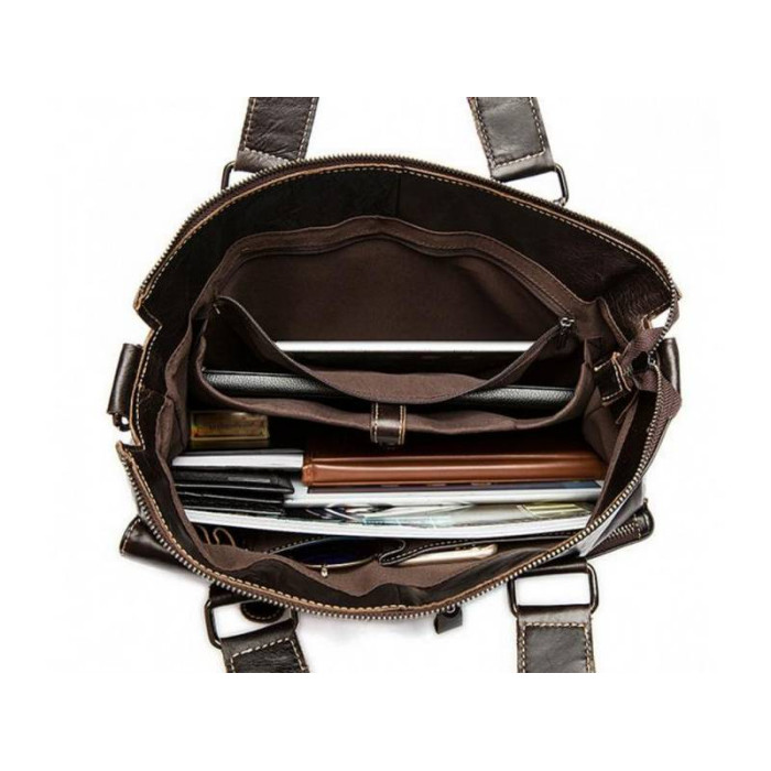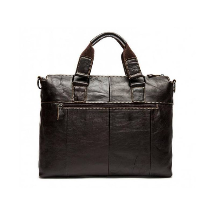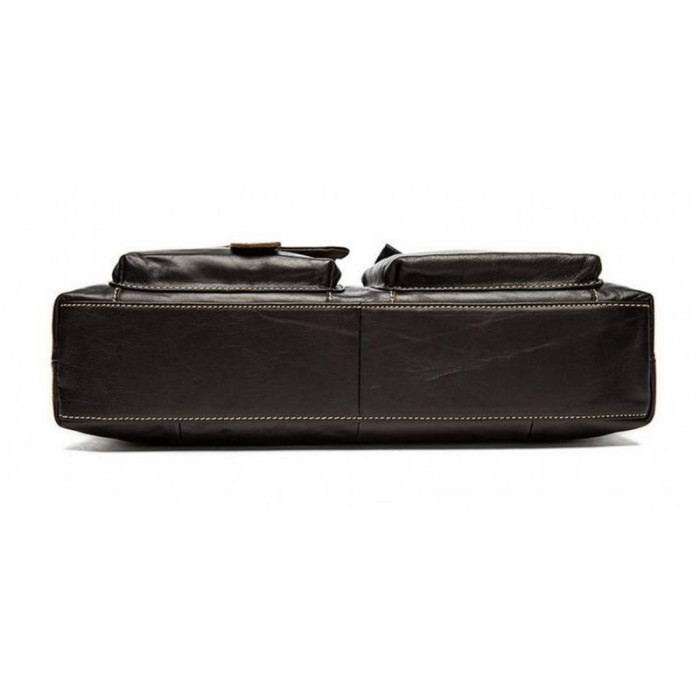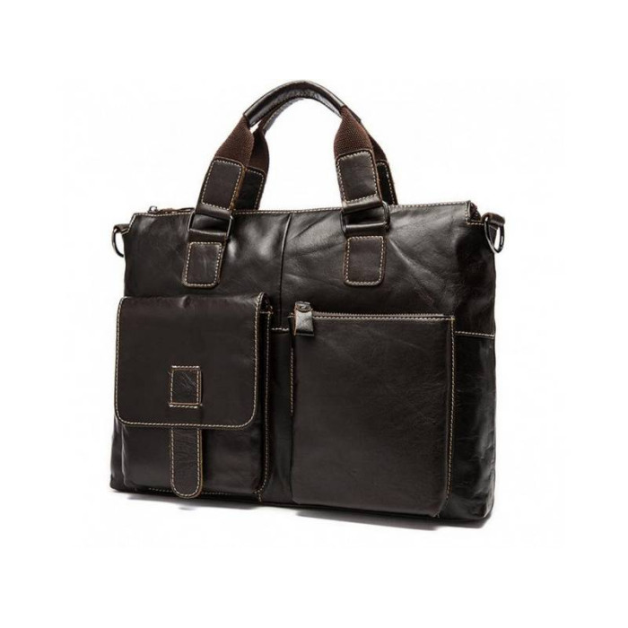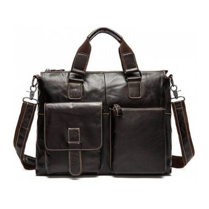 Чоловіча сумка вироблена з натуральної шкіри молодого теляти. На лицьовій стороні є дві накладних кишені: одна на блискавці, одна на клапані. Одне основне відділення закривається за допомогою блискавки і розміщує в собі безліч кишень відкритого і закритого типу. Крім того, є перегородка з фіксатором для ноутбука. На тильній стороні також розташована кишеня на змійці для швидкого доступу до найнеобхідніших речей. Сумку можна носити в руці за допомогою двох ручок вгорі виробу, а також на плечі за допомогою знімного ременя, який можна регулювати по довжині. Ця сумка - невід'ємний елемент повсякденного вбрання для сучасного, динамічного та активного чоловіка. Крім того: така сумка стане чудовим подарунком - здивуйте близьку людину не тільки естетичною, а й практичною річчю!