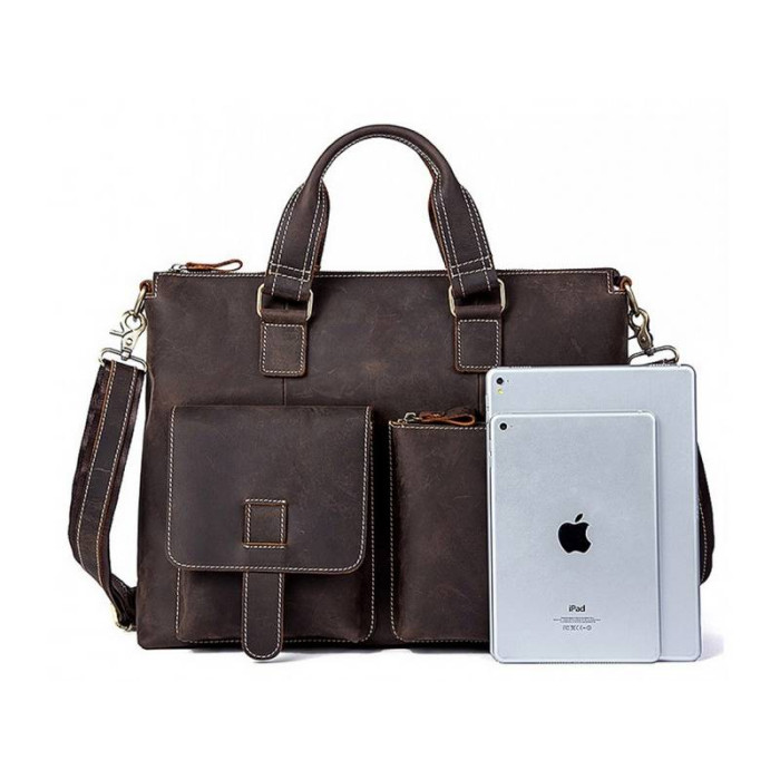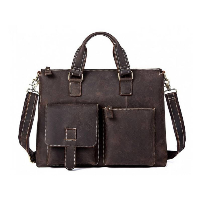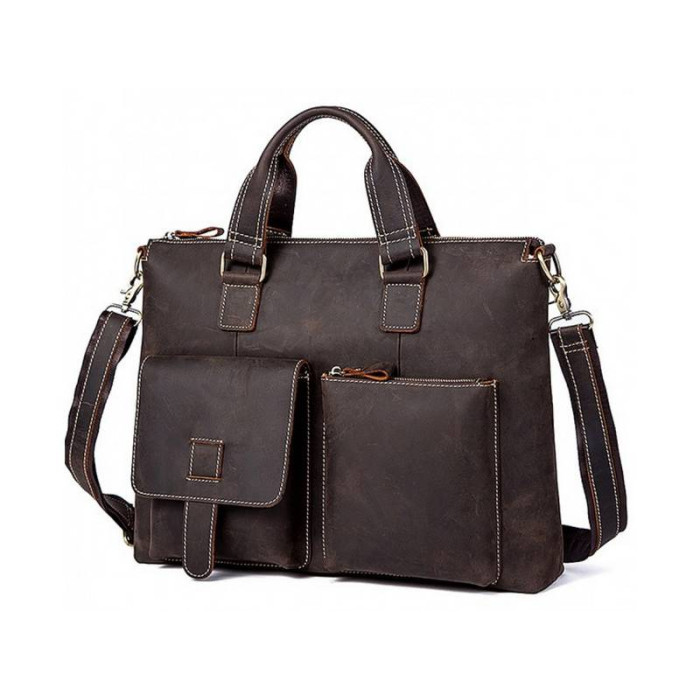 Многогранная коричневая сумка Tiding Bag из натуральной телячьей кожи – отличный выбор для делового человека.