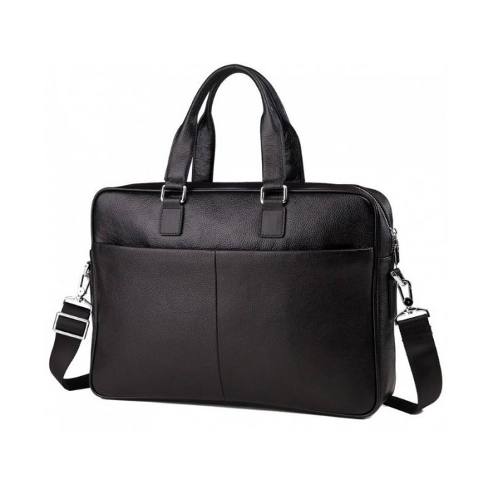 Сумка створена для шанувальників класичного стилю. Модель ідеально підійде, як для ділових зустрічей, так і для поїздок. Виняткова функціональність, лаконічний дизайн в поєднанні з зернистою фактурою натуральної шкіри будуть доречні в будь-якій ситуації. Сумка для ноутбука шкіра виготовлена відповідно базовим чоловічим критеріям: об'ємна фурнітура, строгі лінії, місткі відсіки і багатофункціональні ручки. На лицьовій стороні є дві добротні кишені без застібок, на тильній - відділення на змійці. Для зберігання особливо цінних речей всередині передбачена зручна кишеня на блискавці.