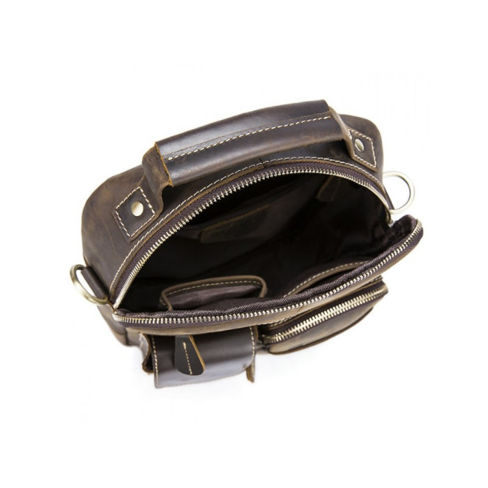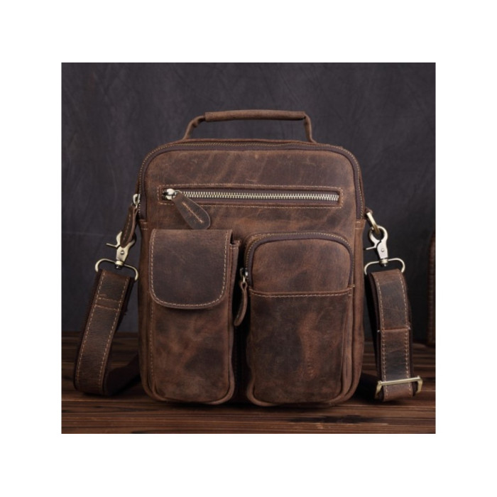 стиль: casual каркасна модель кінська шкіра гладка вінтажна поверхня колір: коричневий розміри (см): 20 х 25 х 7 одне основне відділення + кишені тип носіння: на плечі, в руціОбираючи RoyalBag, Ви отримуєте: