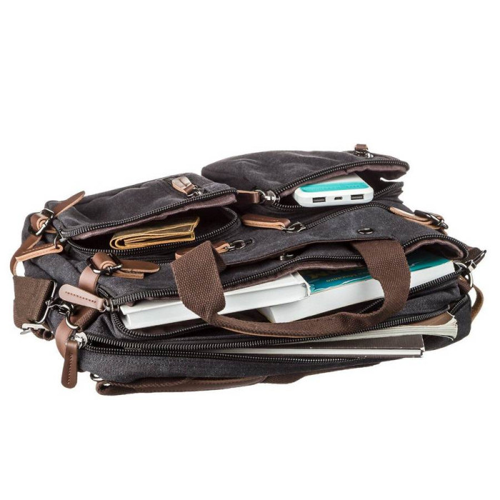 Сумка з міцного текстилю підійде як для чоловіка, так і для жінки. Аксесуар зроблений в Китаї і має достатню кількість різноманітних кишеньок. В сумку ви легко помістите всі найнеобхідніші речі. Усередині сумки є кишеня для ноутбука. В виріб поміститься 15 дюймовий ноутбук. Дана модель не мазка і легко стирається при необхідності. Текстильна сумка хороша альтернатива сумці зі шкірозамінника. Виріб також має міцну фурнітуру. Сумка буде хорошим подарунком для ваших близьких.