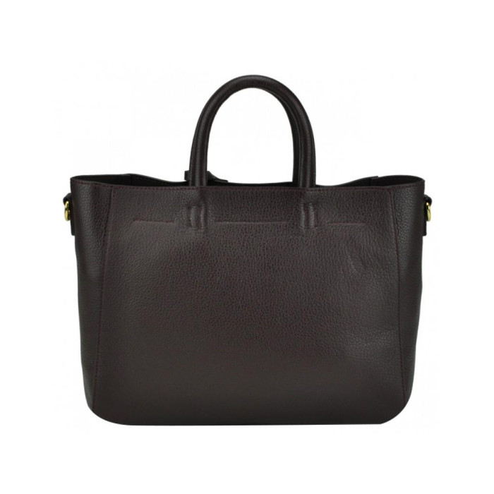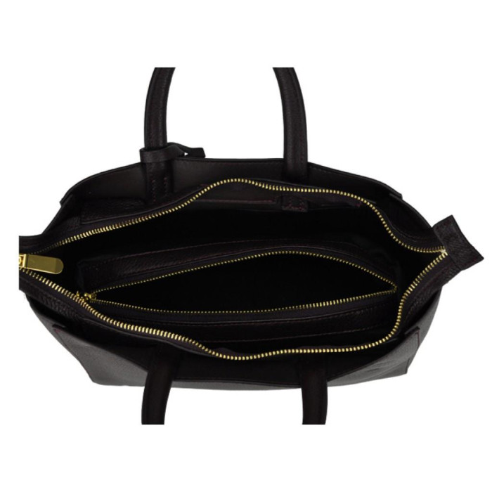 Універсальна модель з телячої зернистої шкіри в класичному виконанні виконує функцію шоппера і ділової сумки на кожен день. Надійно вшиті шкіряні ручки для носіння сумки в руці. Знімна наплічна шлейка регулюються по висоті за допомогою пряжки. Блискавки виконані в золотистому кольорі. Мінімум фурнітури і шви в колір шкіри надають моделі елегантності. Всередині основного відділення відсік у вигляді косметички на змійці, який можна використовувати, як окремий самостійний аксесуар. Кілька кишень-органайзерів з боків основного відсіку допоможуть розмістити необхідні дрібниці.