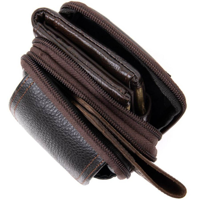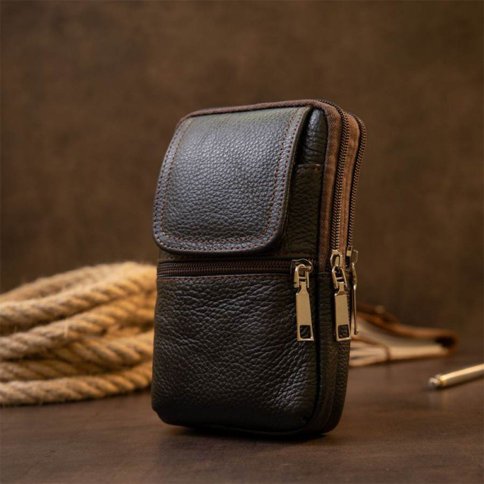 Маленька сумка з легкістю замінить вам барсетку або бананку. Виріб в м'якій шкірі. Аксесуар ви зможете носити на поясі за петельку або за допомогою карабіна. У комплекті текстильний ремінець тонкий. Виріб з рудою ниткою в дизайні. Аксесуар стане просто знахідкою в подорожах або для водіїв. Сумка стане прекрасним подарунком для чоловіка і жінки.
