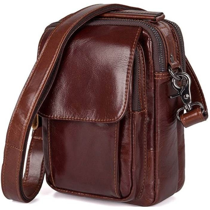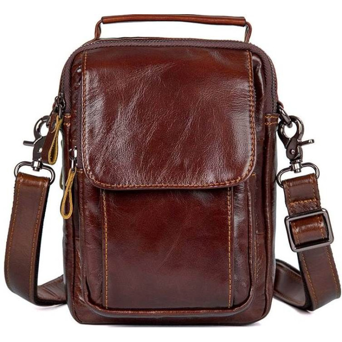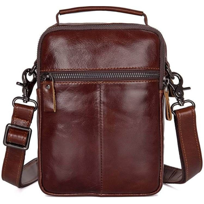 Компактна чоловіча сумка, має компактні розміри і приємну на дотик м'яку шкіру. Вона прекрасно виглядає і зручна у використанні, її можна носити в руці і на плечі (за допомогою плечового ременя, який йде в комплекті). У цій сумці можна носити багато невеликих аксесуарів, таких як невеликий блокнот, гаманець, візитки, переносна зарядка для телефону, ну і сам телефон. Аксесуар упакований в текстильний пилозахисний чохол білого кольору.