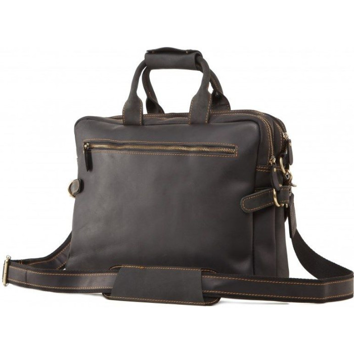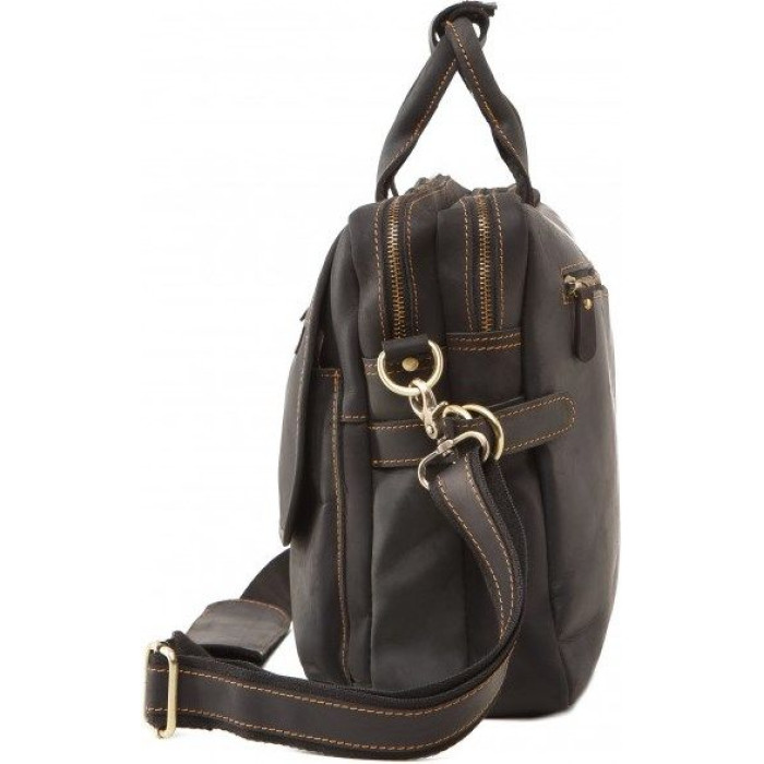 Велика сумка з натуральної високоякісної вінтажної шкіри, характерними ознаками якої є неоднорідність забарвлення і потертості, які надають виробу вишуканого, індивідуального виду. Колір фурнітури: латунь. Сумку можна носити в руці за допомогою шкіряних ручок, а також через плече, в комплекті плечовий ремінь, що знімається, з поєднання міцного текстилю та шкіри. Аксесуар прошитий коричневою міцною ниткою, що надає виробу міцності і оригінального вигляду.