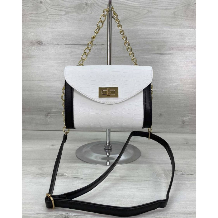 Жіночі сумки 61605 Welassie (Одеса) шкірзамінник високої якості. Сумка має одне відділення. Сумка закривається за допомогою клапана. Усередині сумка без підкладки. В комплекті є регульований плечовий ремінь з ланцюжком. Ручка сумки виконана у вигляді ланцюжка Максимальна довжина плечового ременя 120 см, розміри сумки: довжина 19 см., ширина 8 см, висота 15 см.