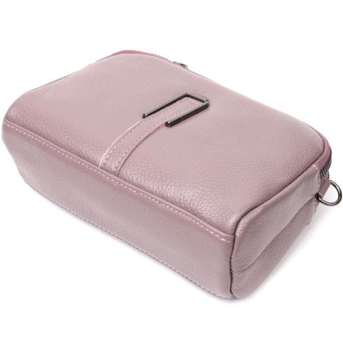 Сумка для жінок невеликого розміру на два автономні відділення з натуральної шкіри флотар, яка невибаглива у догляді та довго носиться. Аксесуар складається з двох автономних відділень, кишені відкритого типу, потайної кишені на блискавці та зовнішньої кишені на блискавці, що знаходиться на тильній стороні. Носити сумку можна в руці, на зап'ясті для цього передбачений шкіряний кистьовий ремінь, що знімається, а також на плечі і через плече, для цього є шкіряний знімний ремінь. В аксесуарі використано якісну фурнітуру кольору срібла. Відмінний варіант сумки для жінок, які люблять якісні та стильні речі.