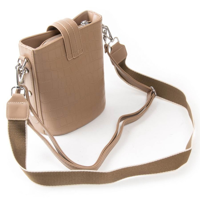 Сумка жіноча Fashion. Одне відділення, що закривається на блискавку та декоративний клапан. Усередині є бічна кишеня на блискавці та відкрита кишеня. У комплекті регульований плечовий ремінь та широкий ремінь.