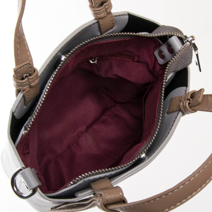 Сумка жіноча Fashion. Три відділення: бічні закриваються на магнітні кнопки, а центральне – на блискавку. Усередині є бічна кишеня на блискавці та відкрита кишеня. У комплекті регульований плечовий ремінь та широкий ремінь.
