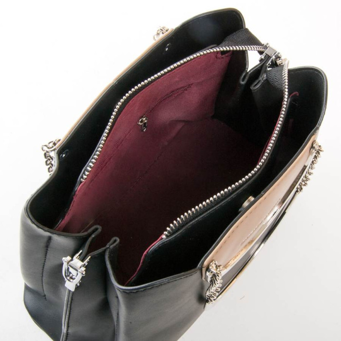 Сумка жіноча Fashion. Три відділення: бічні закриваються на магнітні кнопки, а центральне – на блискавку. Усередині є бічна кишеня на блискавці та відкрита кишеня. У комплекті регульований плечовий ремінь та широкий ремінь.