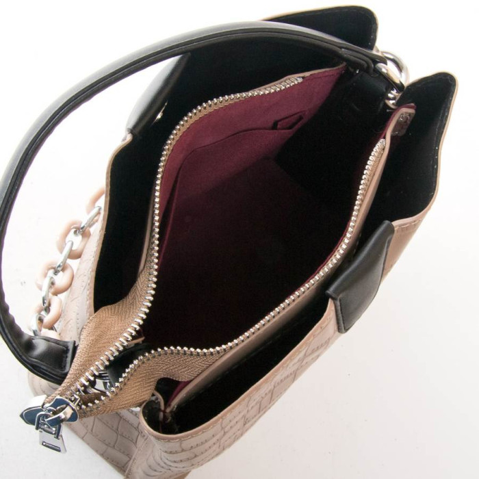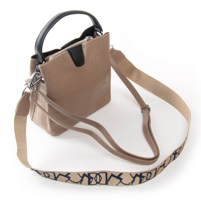 Сумка жіноча Fashion. Три відділення: бічні закриваються на магнітні кнопки, а центральне – на блискавку. Усередині є бічна кишеня на блискавці та відкрита кишеня. У комплекті регульований плечовий ремінь та широкий ремінь.