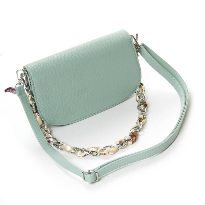Компактна жіноча сумочка Fashion. Під клапаном знаходиться подвійне відділення, розділене кишенею-перегородкою на блискавці. У комплекті регульований плечовий ремінь та знімна ручка-ланцюжок.
