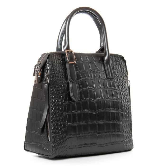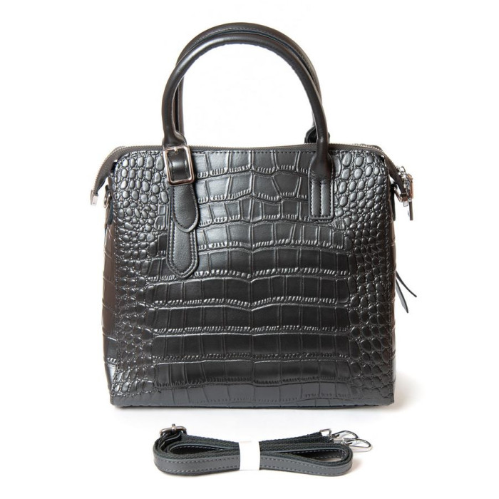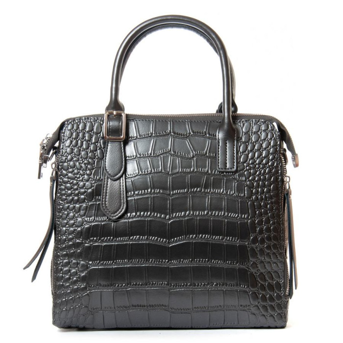 Сумка жіноча Alex Rai. Виготовлена із натуральної щільної шкіри. Фасад та зворотний бік однакові. Закривається на блискавку. Усередині знаходиться подвійне відділення, розділене кишенею-перегородкою на блискавці, подвійна відкрита кишеня та кишеня на блискавці на внутрішніх стінках сумки. На торцях сумки розташовані кишені на блискавці. Дно сумки виконане щільним та на металевих ніжках.