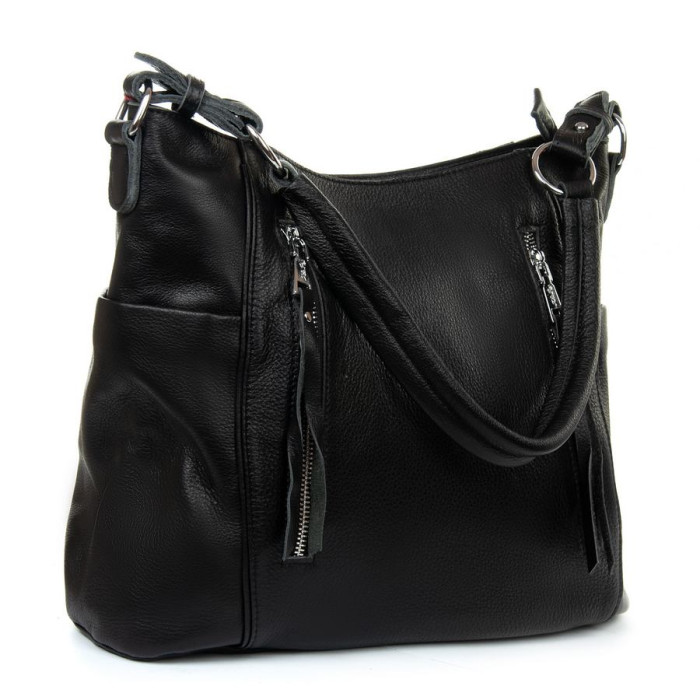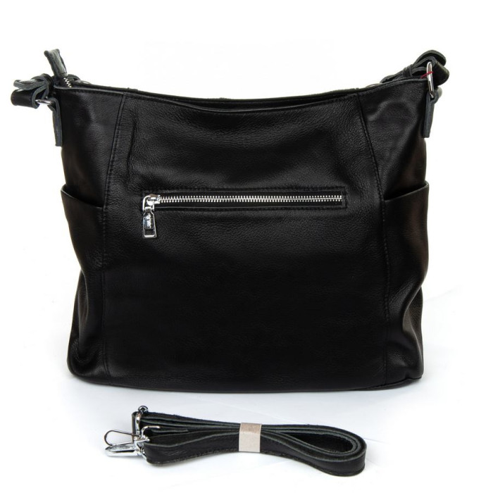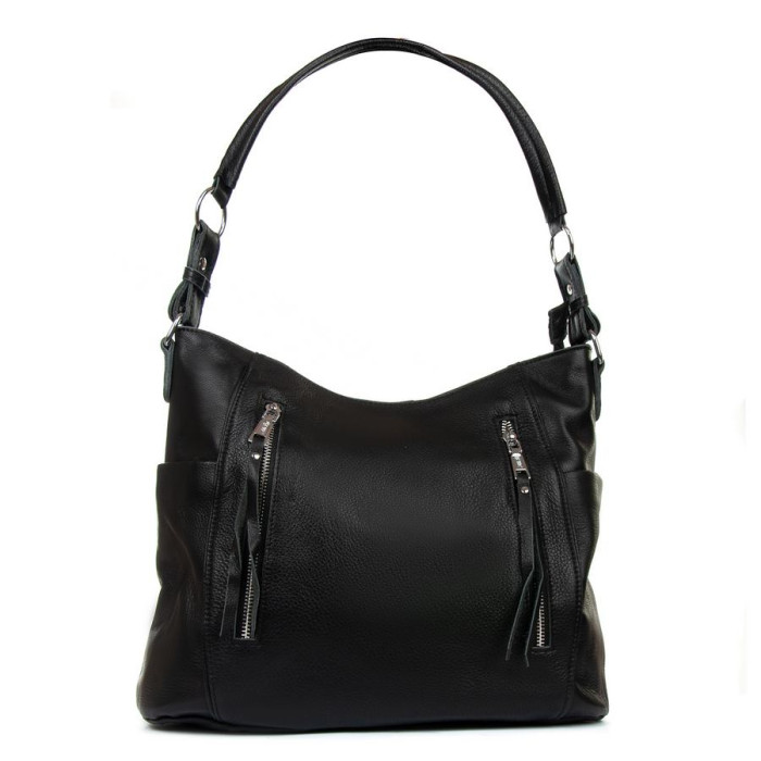 Жіноча шкіряна сумка Alex Rai. Виготовлена із натуральної м'якої шкіри. Закривається на блискавку. Усередині знаходиться подвійне відділення, розділене кишенею-перегородкою на блискавці, відкрита кишеня та бічна кишеня на блискавці. Зовні сумки на фасаді та на звороті є великі кишені на блискавці. На торцях розташовані невеликі відкриті кишені. Ущільнене дно.