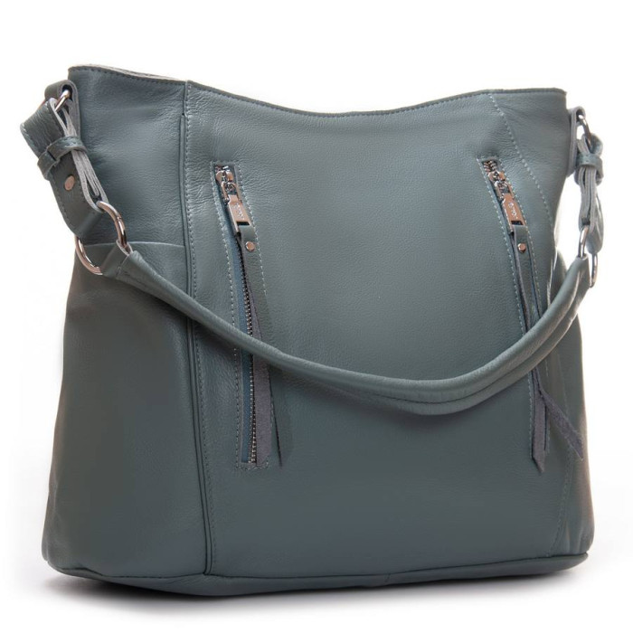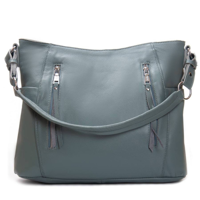 Жіноча шкіряна сумка Alex Rai. Виготовлена із натуральної м'якої шкіри. Закривається на блискавку. Усередині знаходиться подвійне відділення, розділене кишенею-перегородкою на блискавці, відкрита кишеня та бічна кишеня на блискавці. Зовні сумки на фасаді та на звороті є великі кишені на блискавці. На торцях розташовані невеликі відкриті кишені. Ущільнене дно.