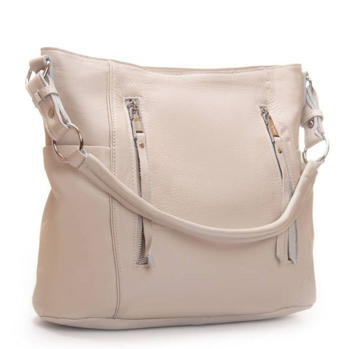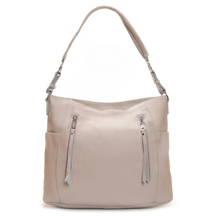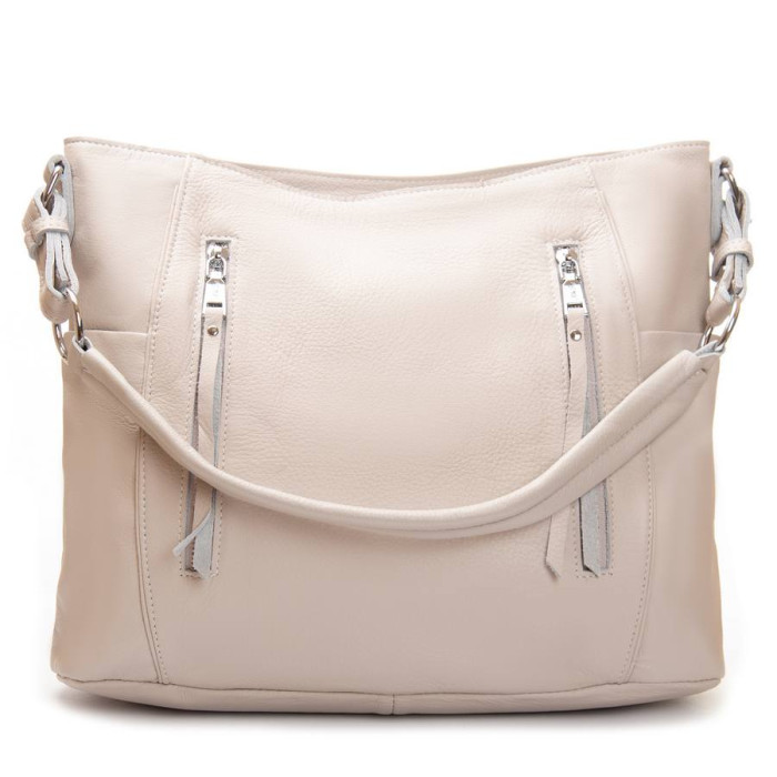 Жіноча шкіряна сумка Alex Rai. Виготовлена із натуральної м'якої шкіри. Закривається на блискавку. Усередині знаходиться подвійне відділення, розділене кишенею-перегородкою на блискавці, відкрита кишеня та бічна кишеня на блискавці. Зовні сумки на фасаді та на звороті є великі кишені на блискавці. На торцях розташовані невеликі відкриті кишені. Ущільнене дно.