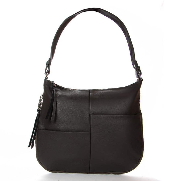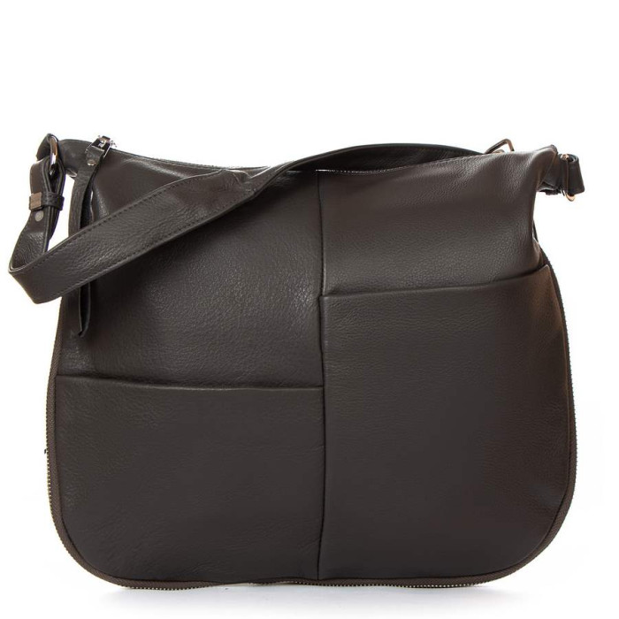 Жіноча шкіряна сумка Alex Rai. Виготовлена ​​із натуральної м'якої шкіри. Закривається на блискавку. Усередині знаходиться подвійне відділення, розділене кишенею-перегородкою на блискавці, відкрита кишеня та бічна кишеня на блискавці. Завдяки блискавці-розширенню дно сумки можна збільшити у глибину. Зовні сумки на фасаді є дві відкриті кишені, а на звороті є кишеня на блискавці.