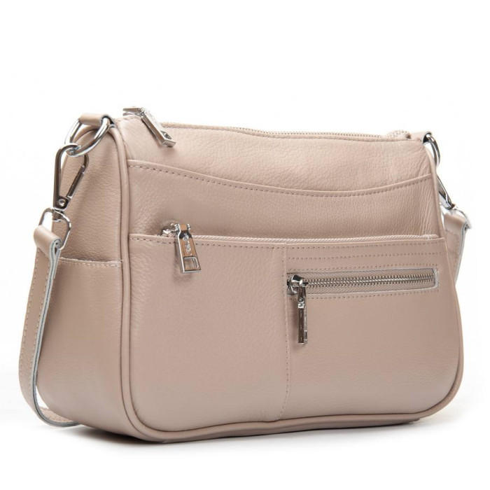 Жіноча компактна сумочка Alex Rai. Виготовлена з натуральної м'якої шкіри. Закривається на блискавку. Усередині розташоване основне і додаткове відділення, розділене кишенею-перегородкою на блискавці, відкрита велика кишеня і бічна кишеня на блискавці. На фасаді розташовані дві кишені на блискавці, а на зворотному боці одна кишеня. На торцях сумочки є маленькі відкриті кишені.