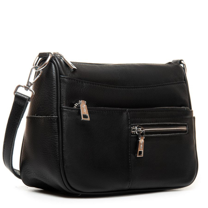 Жіноча компактна сумочка Alex Rai. Виготовлена з натуральної м'якої шкіри. Закривається на блискавку. Усередині розташоване основне і додаткове відділення, розділене кишенею-перегородкою на блискавці, відкрита велика кишеня і бічна кишеня на блискавці. На фасаді розташовані дві кишені на блискавці, а на зворотному боці одна кишеня. На торцях сумочки є маленькі відкриті кишені.