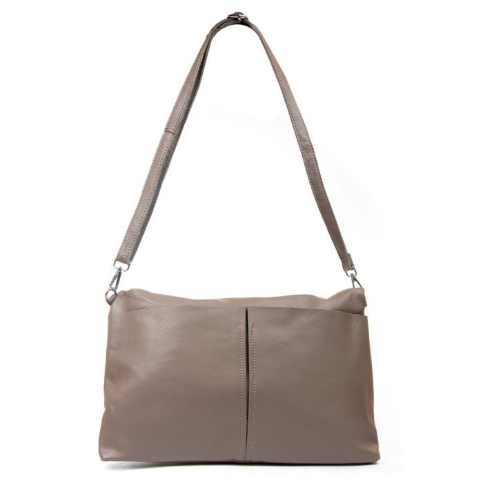 Жіноча велика шкіряна сумка Alex Rai. Виготовлена з натуральної м'якої шкіри. Сумку можна скласти вдвічі та носити на плечовому ремені. Закривається на блискавку. Усередині знаходиться одне велике відділення з відкритою бічною кишенею і кишенею на блискавці. Зовні сумки на фасаді розташовані дві великі відкриті кишені, а на зворотному боці знаходиться кишеня на блискавці. Жорстке дно.