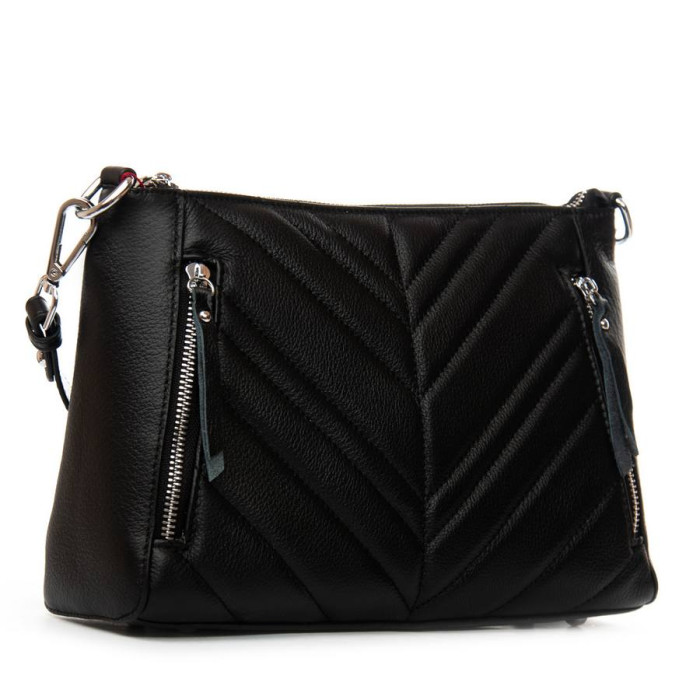 Жіноча шкіряна сумочка Alex Rai. Виготовлена з натуральної м'якої шкіри. Закривається на блискавку. Усередині знаходиться подвійне відділення розділене кишенею-перегородкою на блискавці, бічна відкрита кишеня і кишеня на блискавці. Зовні сумки на фасаді та зворотному боці розташовані кишені на блискавці. Дно сумки ущільнене, на металевих ніжках.
