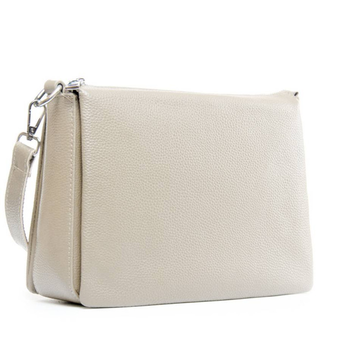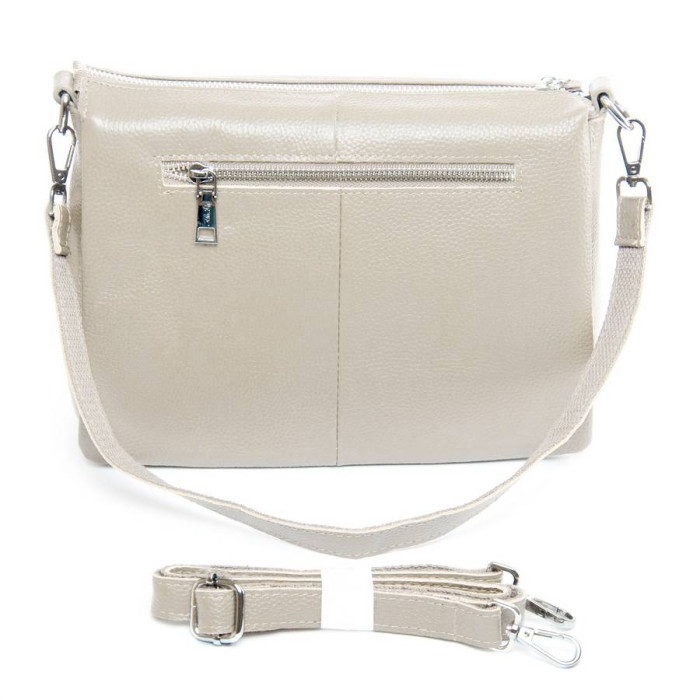 Виготовлена з натуральної м'якої шкіри. Закривається на блискавку. Всередині знаходяться три відділення, розділені кишенею-перегородкою. Середнє відділення додатково закривається на блискавку, а всередині знаходиться бічна відкрита кишеня і кишеня на блискавці. Зовні сумки на зворотному боці розташована кишеня на блискавці.