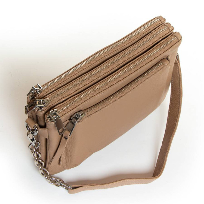 Жіноча шкіряна сумочка – клатч Alex Rai. Виготовлена із натуральної м'якої шкіри. Три відділення, що закриваються на блискавці. Усередині одного відділення є бічна кишеня на блискавці. Зовні сумки на фасаді та на звороті розташовані кишені на блискавці.