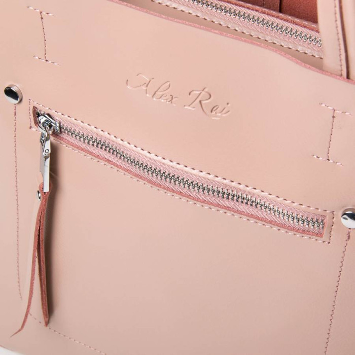 Жіноча сумка Alex Rai. Виготовлена з натуральної щільної шкіри. Закривається на блискавку. Всередині знаходиться подвійне відділення, розділене кишенею-перегородкою на блискавці, подвійний відкритий кишеню і кишеню на блискавці на внутрішніх стінках сумки. На фасаді і зворотному боці розташовані кишені на блискавці. Дно сумки з металевими ніжками. У комплекті регульований плечовий ремінь.