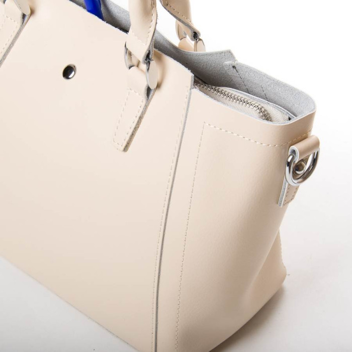 Жіноча сумка Alex Rai. Виготовлена з натуральної щільної шкіри. Три відділення: центральне закривається на блискавку, а бічні на магнітні кнопки. Усередині центрального відділення є подвійна відкрита кишеня і кишеня на блискавці. Дно сумки жорстке, з металевими ніжками. У комплекті регульований плечовий ремінь.