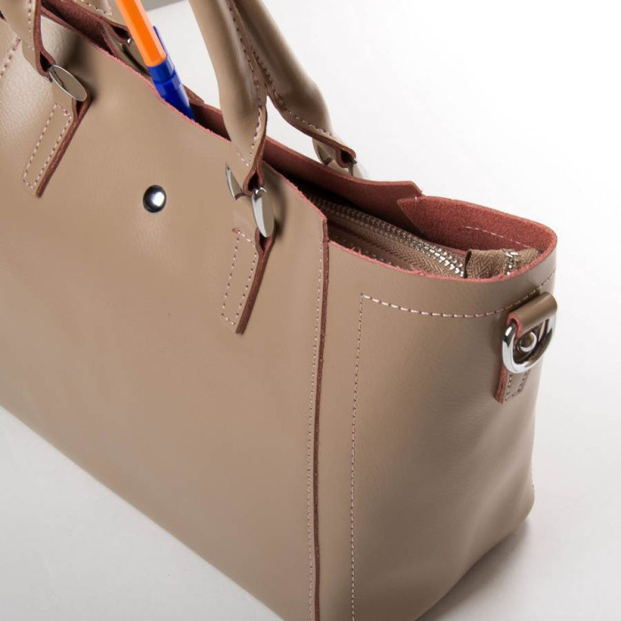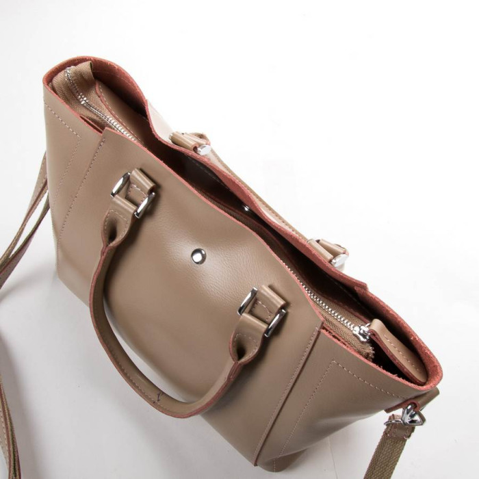 Жіноча сумка Alex Rai. Виготовлена з натуральної щільної шкіри. Три відділення: центральне закривається на блискавку, а бічні на магнітні кнопки. Всередині центрального відділення є подвійна відкрита кишеня і кишеня на блискавці. Дно сумки жорстке, з металевими ніжками. В комплекті регульований плечовий ремінь.