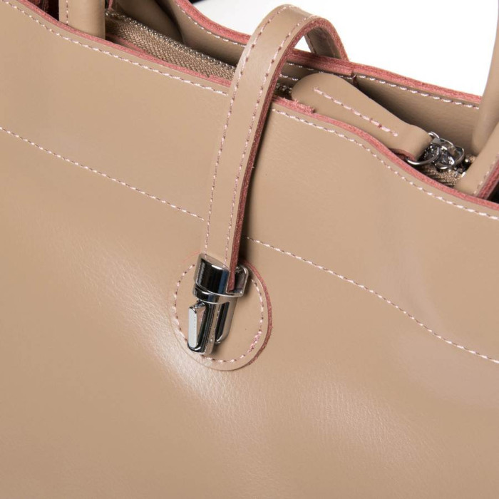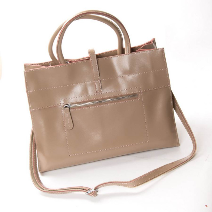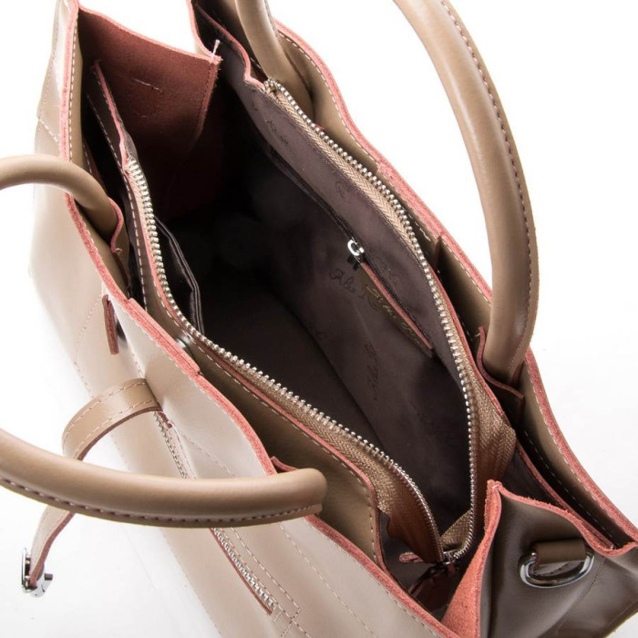 Жіноча сумка Alex Rai. Виготовлена з натуральної щільної шкіри. Три відділення: центральне закривається на блискавку, а бічні на магнітні кнопки. Всередині центрального відділення є подвійна відкрита кишеня і кишеня на блискавці. Зовні сумки, на зворотному боці є кишеня на блискавці. Дно сумки жорстке, з металевими ніжками. В комплекті регульований плечовий ремінь.