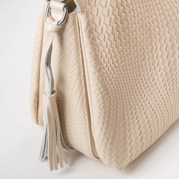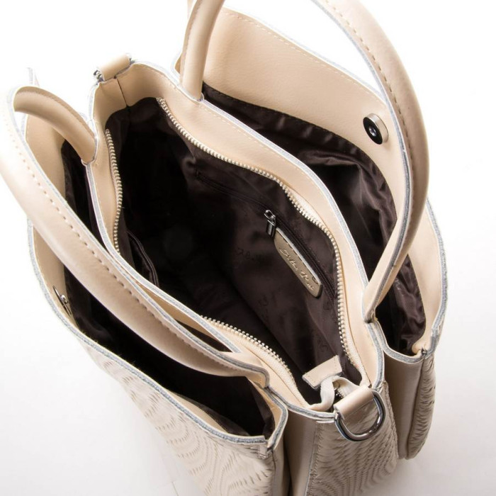 Сумка жіноча Alex Rai. Виготовлена із натуральної щільної шкіри. Три відділення: центральне закривається на блискавку, а бічні – на магнітну кнопку. Усередині центрального відділення є подвійна відкрита кишеня та кишеня на блискавці. Зовні сумки, на звороті є кишеня на блискавці. У комплекті регульований плечовий ремінь.