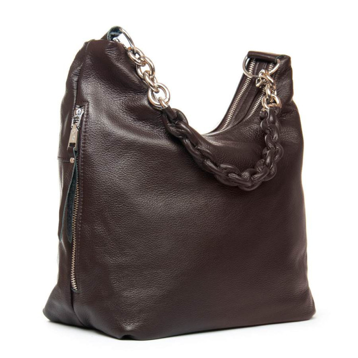 Виготовлена ​​із натуральної м'якої шкіри. Два відділення, що закриваються на блискавці. Усередині знаходиться відкрита кишеня та бічна кишеня на блискавці. Зовні сумки на торцях та на звороті є великі кишені на блискавці. Ущільнене дно.